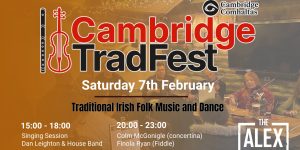 TradFest a weekend of traditional folk music and dance across multiple venues. Colm McGonigle (concertina) & Finola Ryan (fiddle) Free Entry but seating limited. Reserve here: https://www.thealexcambridge.com/bookings/